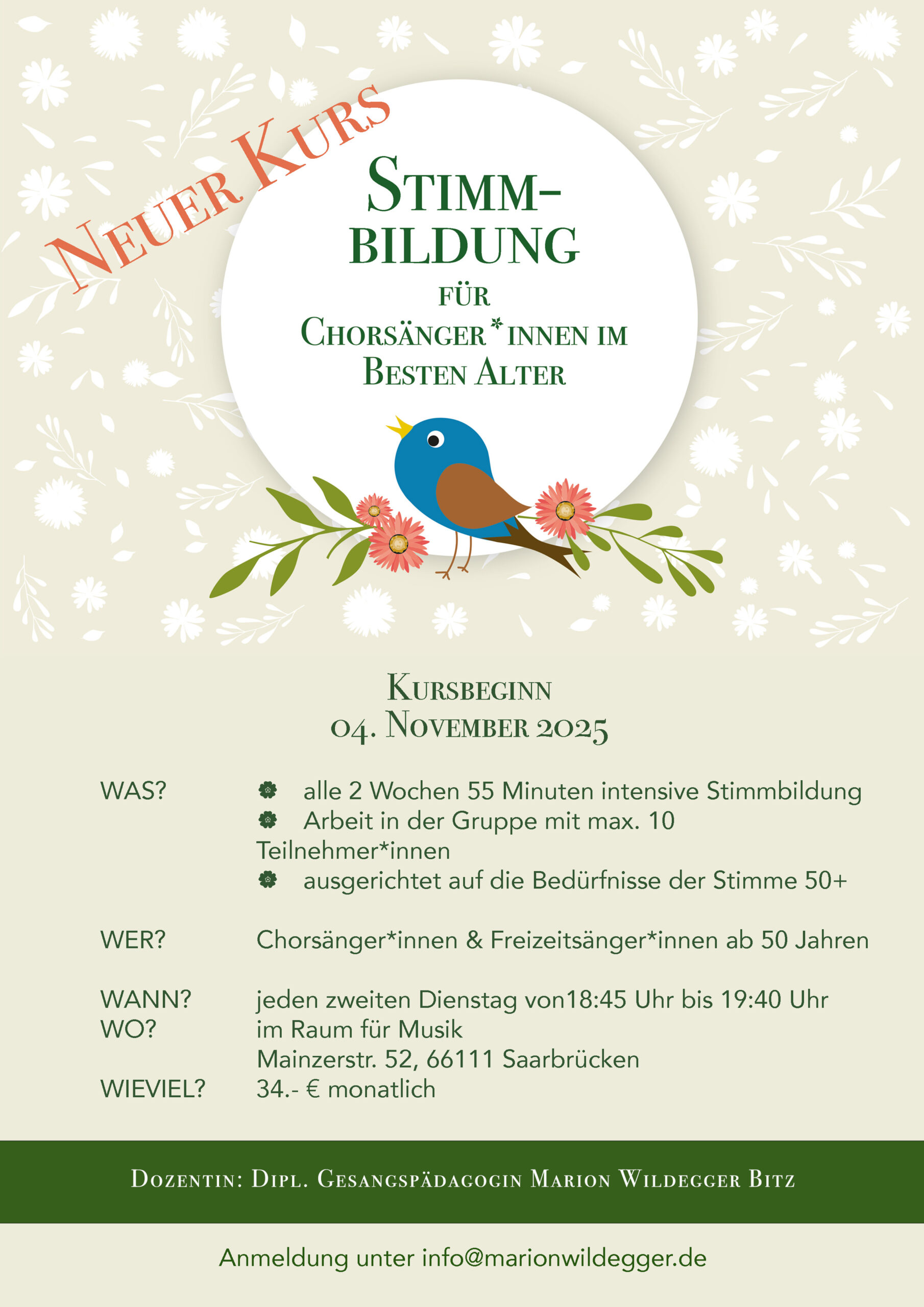 „Zentrum Stimme Gesang“ an. Sie führt damit das Kursmodell von Amei Scheib fort.